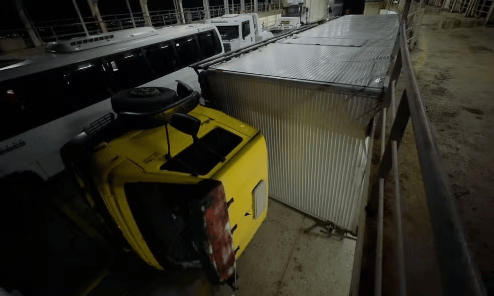 Caminhão tomba dentro de Ferry-Boat durante travessia na Baía de Todos os Santos