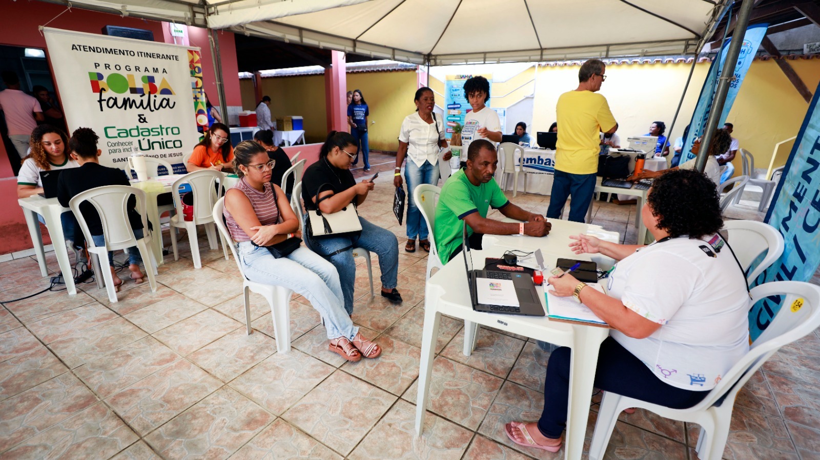 A população tem acesso a diversos serviços gratuitos como emissão de documentos, aferição da pressão arterial, encaminhamentos para reconhecimento de paternidade, atendimento da Embasa, INSS, SineBahia, Tribunal Regional Eleitoral (TRE), Defensoria Pública (DPE), Passe Livre Intermunicipal, Tribunal de Justiça (TJBA), inscrição no CadÚnico do Governo Federal, e orientação sobre defesa do consumidor. Ainda são realizadas ações formativas com estudantes do ensino médio e fundamental, no Colégio Estadual de Tempo Integral Clóvis Ezequiel e na Escola Municipalizada Professor Anísio Teixeira.