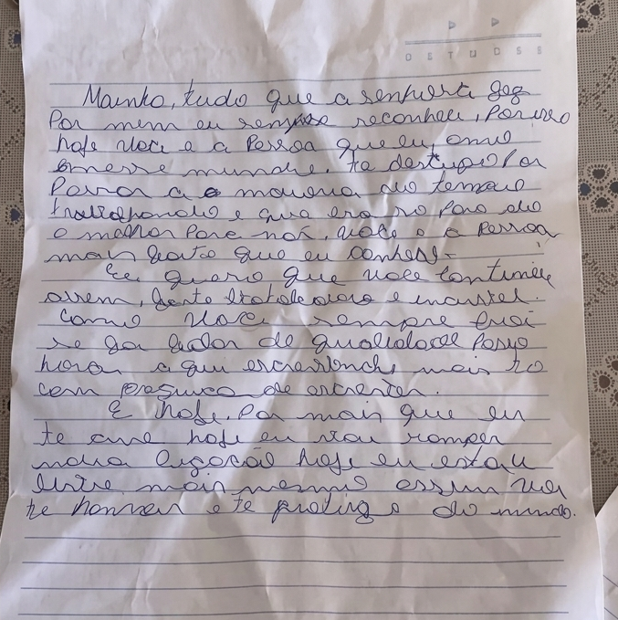 Antes de desaparecer, Elen Santos deixou uma carta destinada à mãe, na qual sinalizava o rompimento da relação familiar. Na mensagem, expressou afeto, mas indicou a decisão de seguir um novo caminho, afirmando que continuaria a honrá-la e protegê-la.