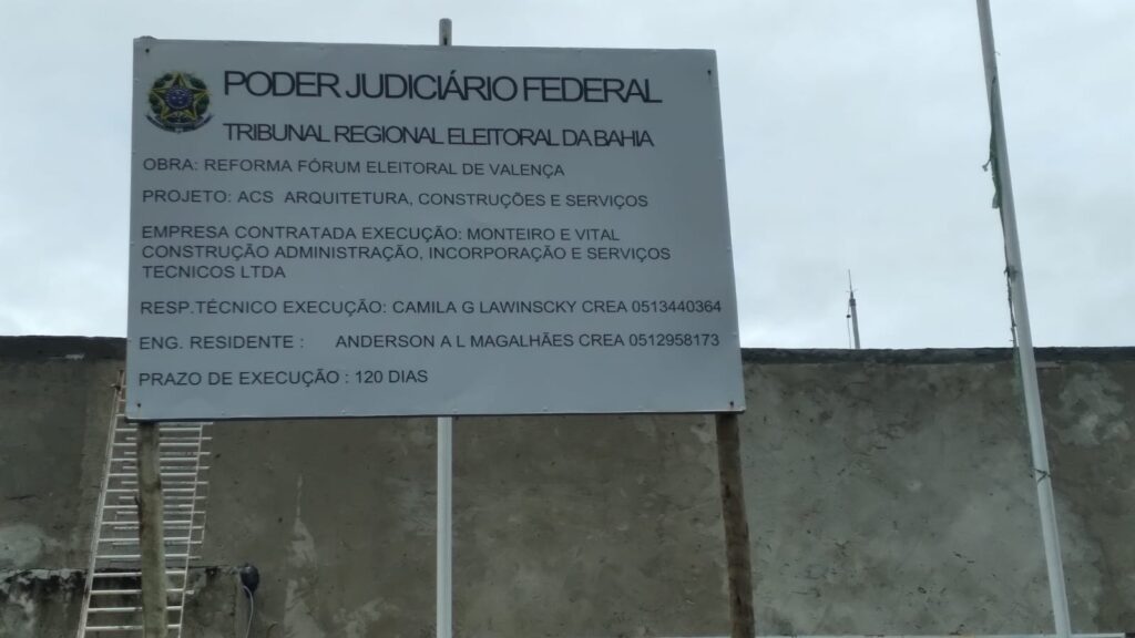 A obra do Tribunal Regional Eleitoral (TRE), no município de Valença, encontra-se paralisada, conforme informações apuradas. A empresa responsável pela execução do serviço, Monteiro e Vital, teria um prazo de 120 dias para a conclusão da obra, no entanto, há indícios de abandono das atividades no local.