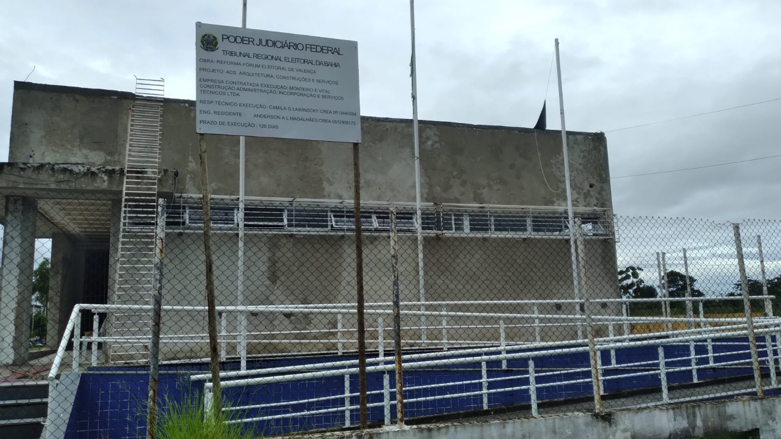 A obra do Tribunal Regional Eleitoral (TRE), no município de Valença, encontra-se paralisada, conforme informações apuradas. A empresa responsável pela execução do serviço, Monteiro e Vital, teria um prazo de 120 dias para a conclusão da obra, no entanto, há indícios de abandono das atividades no local.